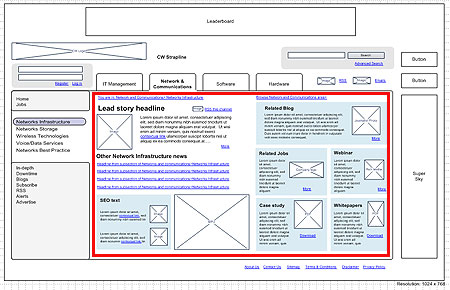 For CW.com, we focused on the cores for the home page, a channel level homepage, and a news article page and looked at key content such as lead news story and the editor’s picks or the best from the web aggregated from external sources. The key functionality and supporting content also had to be included and prioritized on the page.