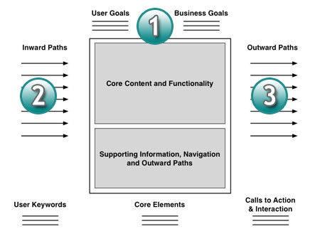 - Offer relevant outward paths from the core – Ensure that the site delivers both user and business goals through clear calls to action and completion of interaction tasks.