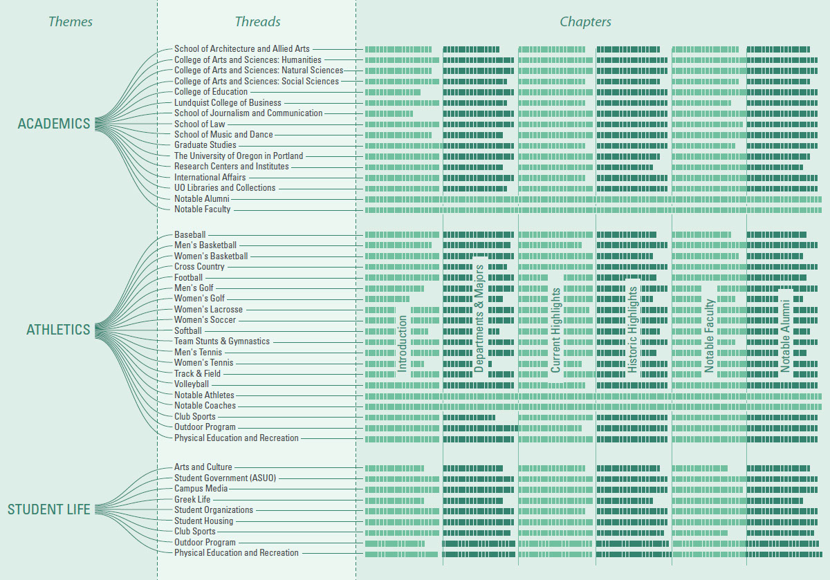 At “Second Story”:http://www.secondstory.com, the interactive media studio where I am a content strategist, designed and built a project for the University of Oregon that serves as a great example of how this kind of strategic thinking and planning can be applied to an integrated media environment with deep interactive content and space design.