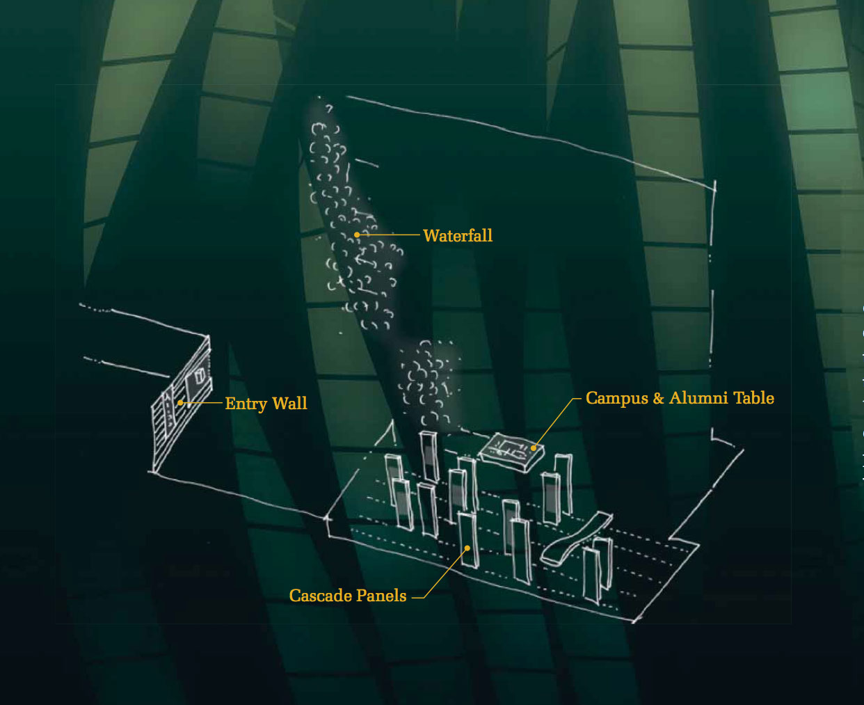 The concept of the university as bedrock, with the students and faculty flowing through, was a source of inspiration in developing the concepts.
