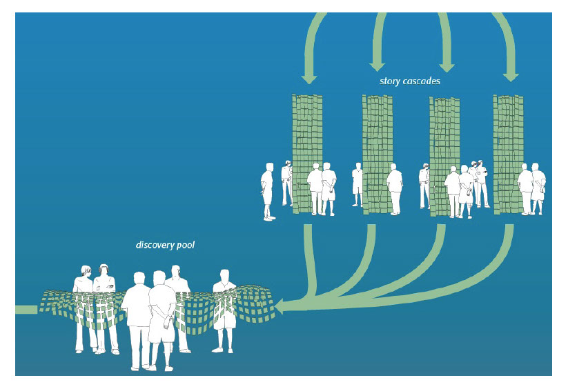 The traditional approach toward applying media of any kind to a physical space has been to start with the space. You mark up a floor plan with a bubble diagram showing the storytelling opportunities, and then figure out what might best fill that space. That alcove could be perfect for an interactive table! That wall is crying out for a projection! Put a reader rail over there!